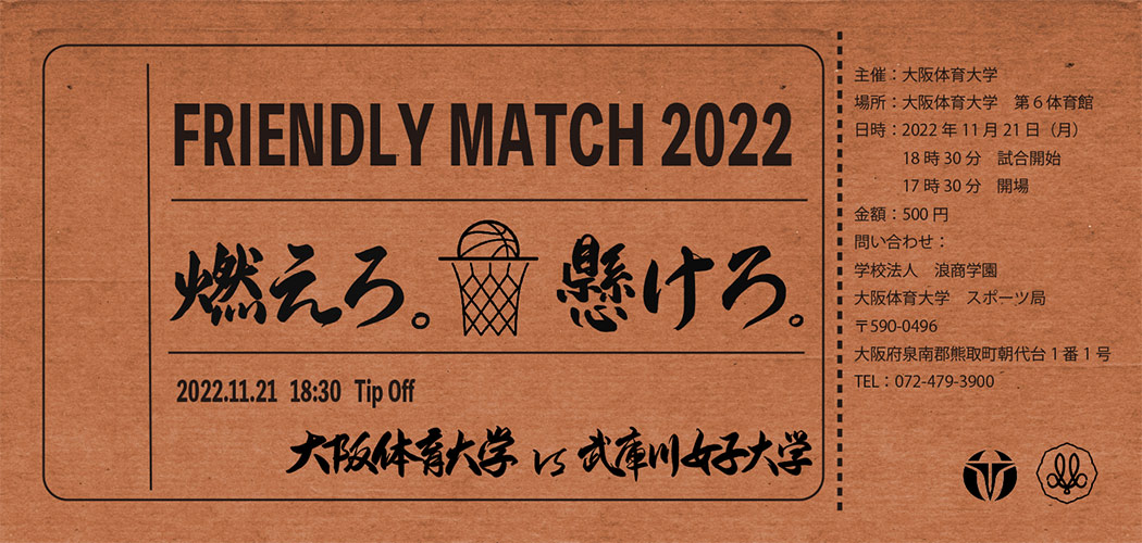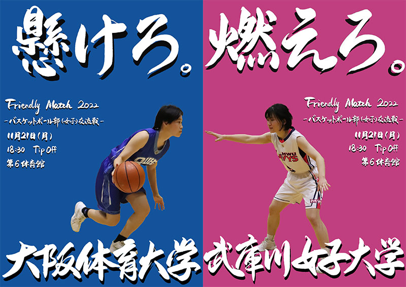 11月21日(月)、本学の第6体育館にて、バスケットボール部女子交流戦「フレンドリーマッチ2022 大阪体育大学×武庫川女子大学」を開催いたしました。